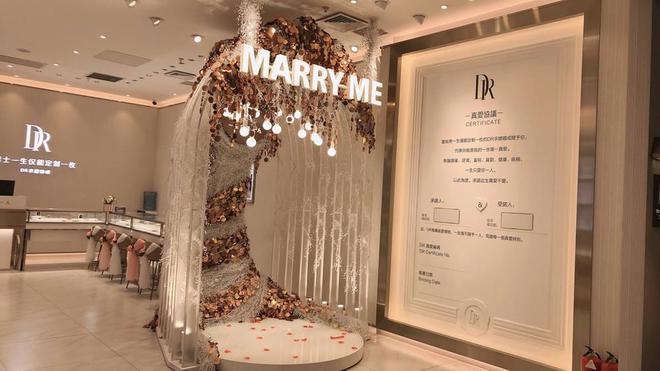 其实,D.R在婚戒市场是一个新玩家。2010年其母公司迪阿股份成立后,为了打开市场,推出了“真爱验证系统”,每位购买的男士都需登记身份证信息,且只有一次购买权限。再搭配“男士一生仅能定制一枚D.R钻戒。”的广告词,D.R钻戒迅速走红。假如一位男士想要购买DR钻戒给配偶,需要提前提供自己及配偶的身份证给D.R门店,再经过交定金、选定款式,然后等待1-3个月的时间才拿到戒指,相较在其他品牌专柜购买时间要长很多。