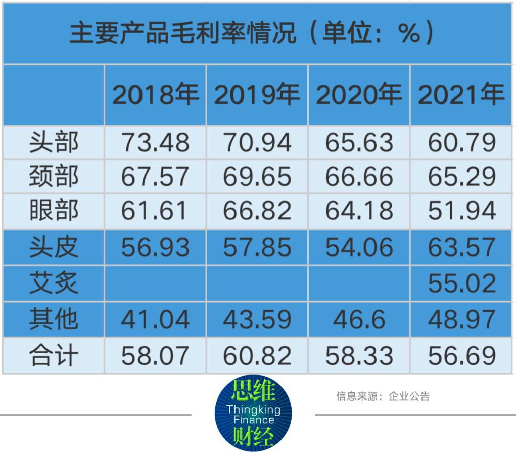 从单品来看,据2021年年报披露,四大主力产品头部、颈部、头皮、眼部按摩器的毛利率分别约为61%、65%、52%、64%
