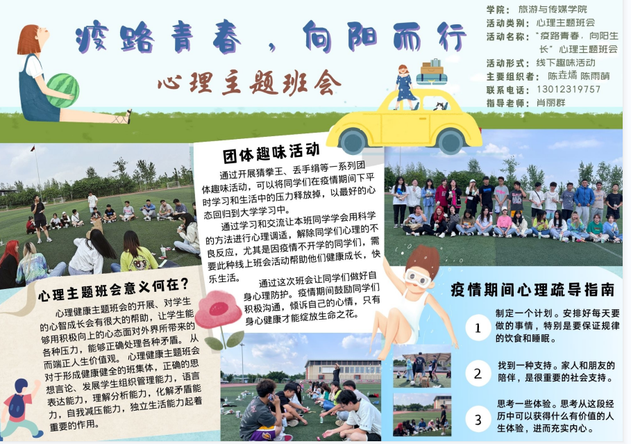 重庆交通大学旅游与传媒学院高度重视学生心理健康教育工作,党政工团齐抓共管,家校积极联动,不断丰富生命教育课堂文化和生命教育体验实践活动内涵,助力学子向阳生长。