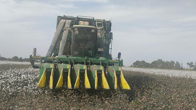 眼下,正值棉花采收期。在普惠乡,34.6万亩棉花陆续开始采摘工作,田间地头随处可见采棉机往来穿梭,机声隆隆,一派繁忙景象。
