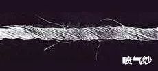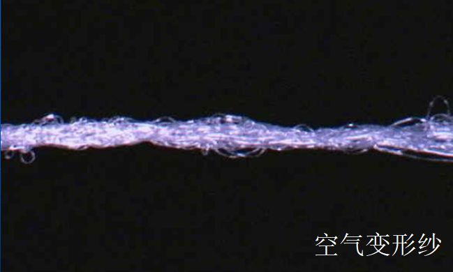 空气变形纱:外表有大小不同的丝圈,使其膨松、手感好,有类似短纤纱的特征;