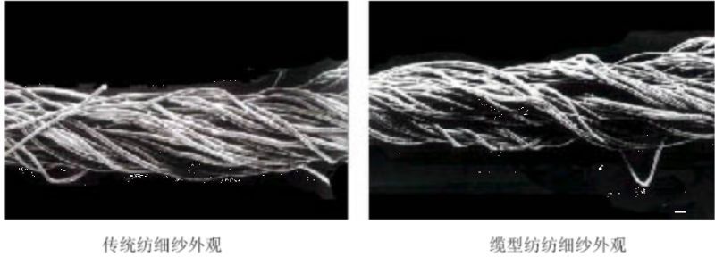 纱条中纤维伸直度低,弯勾、打圈、对折的纤维数量多;纤维内外转移少,多为分层排列的圆柱螺旋线状;条干均匀度好,除涡流纱外均优于环锭纱;疵点少,毛羽少,耐磨性好,染色和上浆性好;但纱强力低,伸长较大。